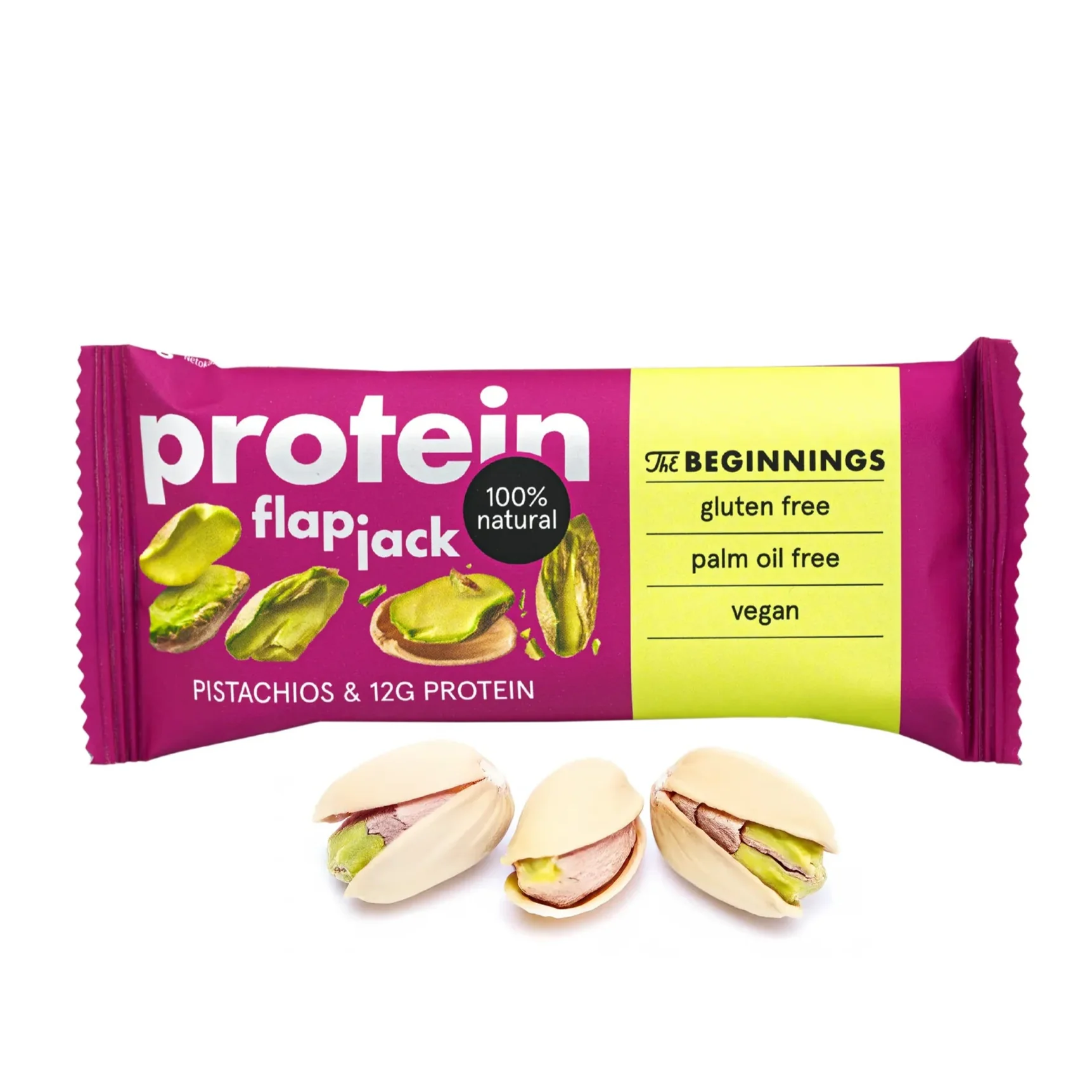 Protein Pistachios FlapJack – proteínová tyčinka vyrobená z prírodných surovín, bez použitia palmového oleja a s čistým zložením. Je pripravená z kvalitných pistácií, ktoré jej dodávajú bohatú, orieškovú chuť a prirodzený zdroj energie. Ideálna ako rýchly snack počas dňa alebo po fyzickej aktivite.